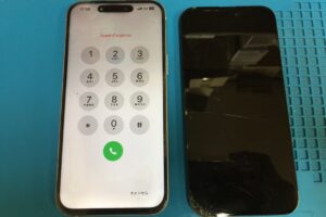 状態は画面のガラスがバキバキにひび割れていましたが液晶表示やタッチ操作は正常な状態でした。