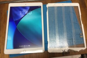 新しいバッテリーと新しい耐水パッキンを貼り付けて準備ができたら液晶パネルを戻して交換完了となります。