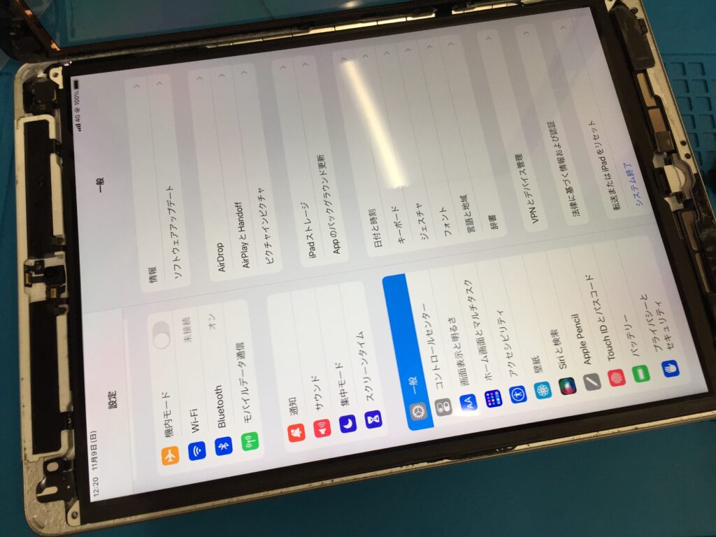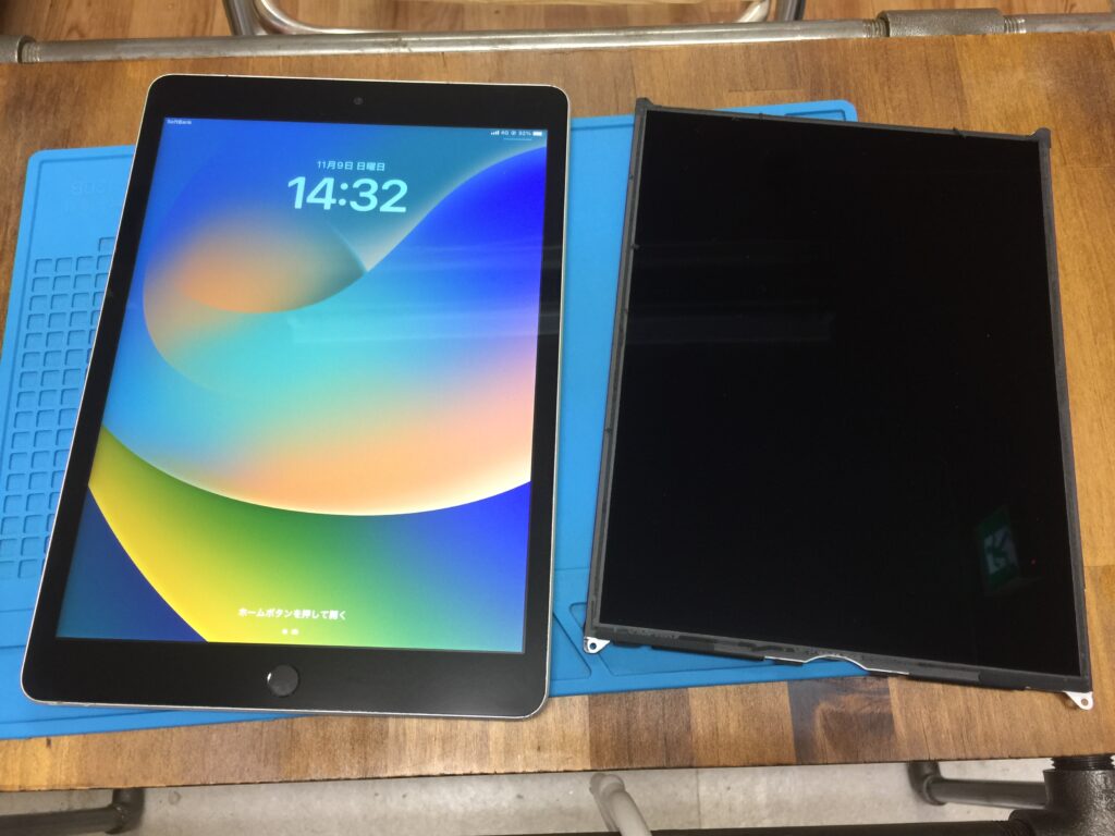 iPad9はガラスと液晶が別になっているのでこのような場合は液晶だけの交換で修理をします。