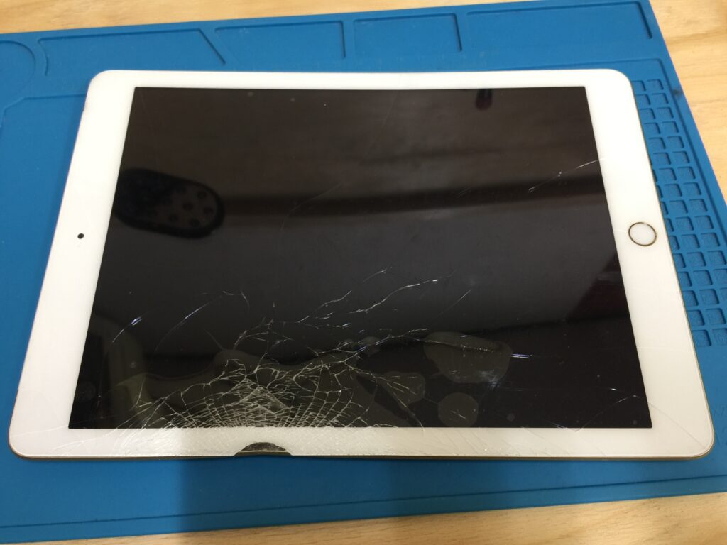 画面が激しく割れてしまったiPad5の画面修理のご依頼でした。