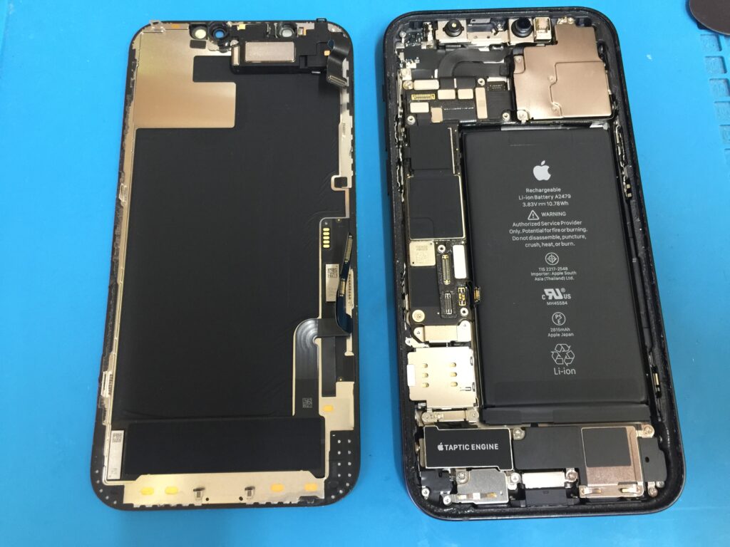 iPhone12以降の機種は耐水性能が上がっていて画面を剥がすのに少しお時間がかかります。