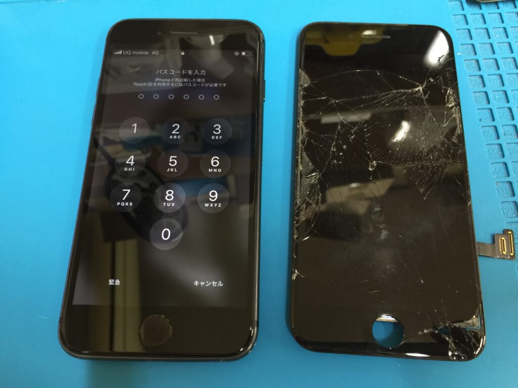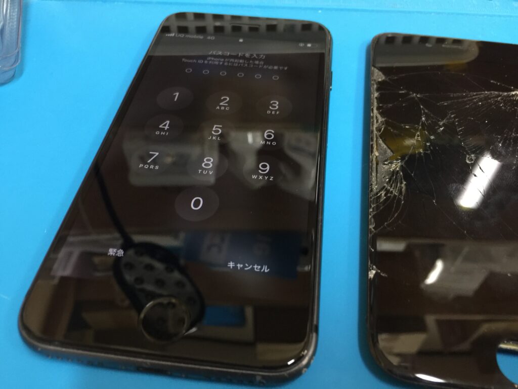 今回はiPhone8の画面割れと液晶表示故障とタッチ操作ができない状態でした。