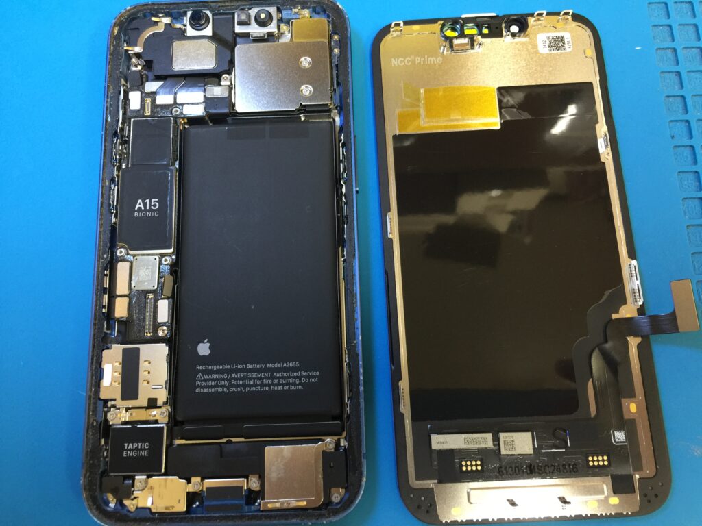 画面を仮付けして直ることを確認してから作業を進めて修理完了となります。