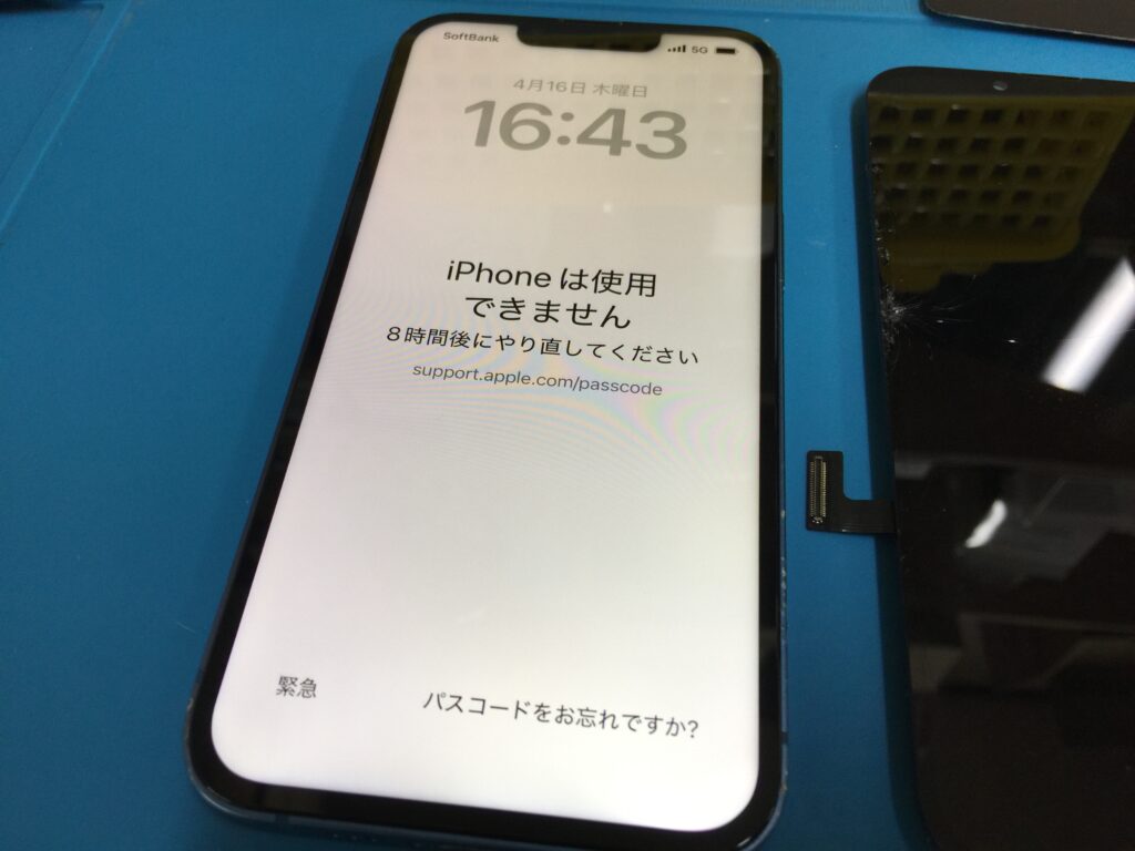 画面が完全に壊れていると真っ暗で何も見えないときは新しい画面を取り付けるまでパスコードの状態がどうなっているかはわからないことがあります。