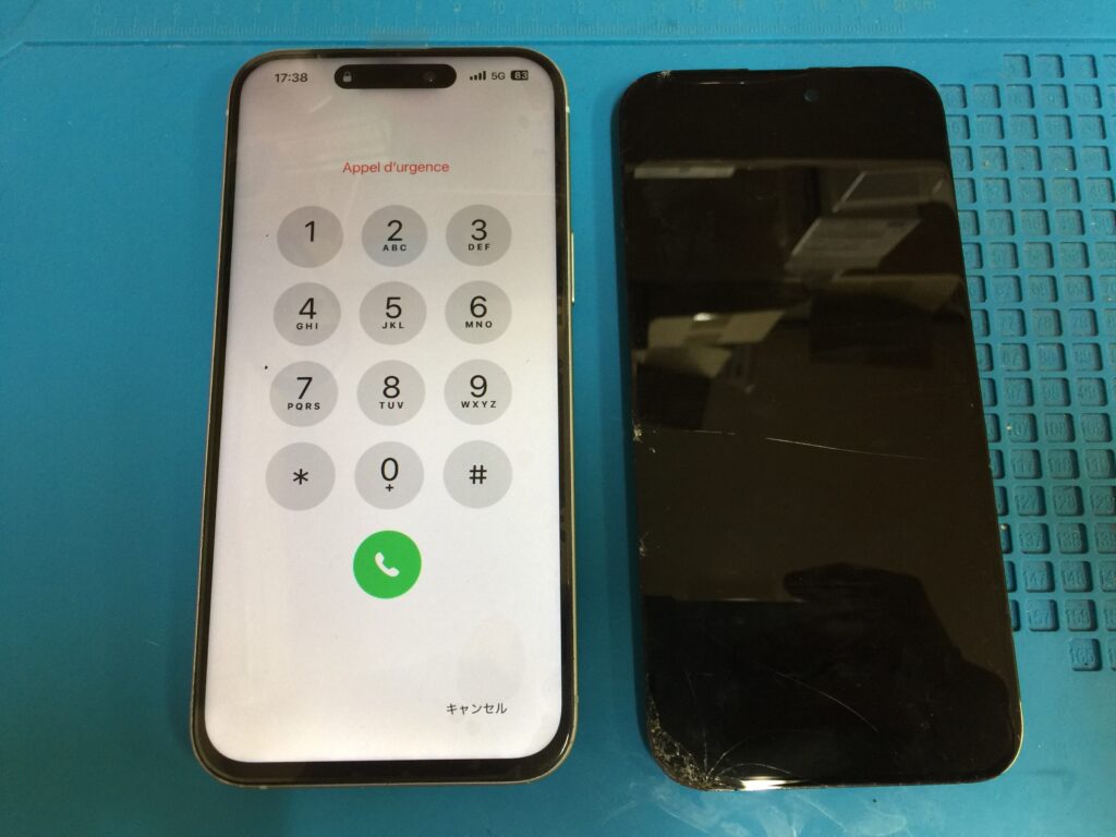 今回は水濡れ後にタッチ操作ができなくなったiPhone15プラスの水分乾燥と画面交換でした。